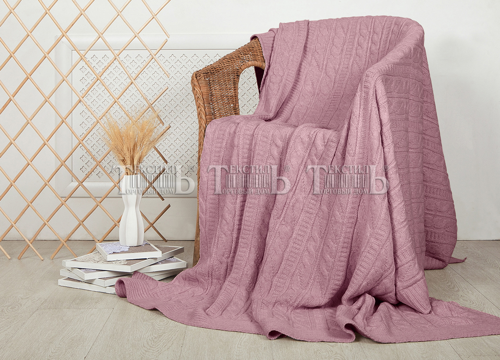 Плед вязаный Mel Sonn ПВ Светлая брусника (косы) 2224