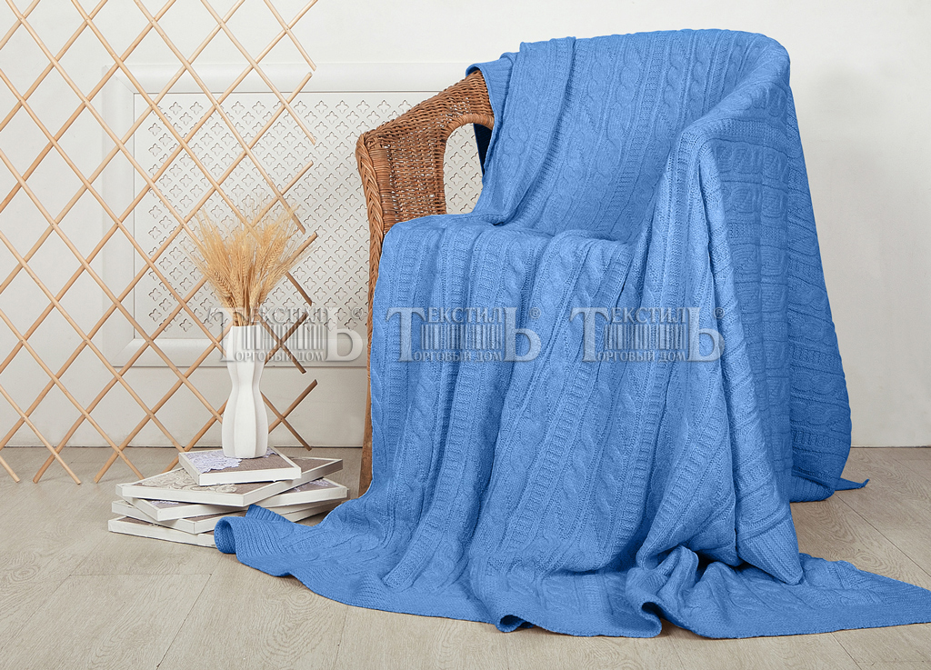 Плед вязаный Mel Sonn ПВ Голубой (косы) 1622
